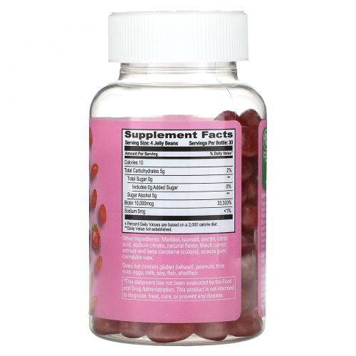 Human Beanz, желейные бобы с биотином, максимальная сила действия, без сахара, клубничный взрыв, 10 000 мкг, 120 мармеладок (2500 мкг в каждом мармеладке)