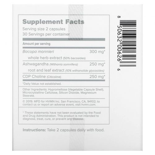 | Экстракт цельной травы Bacopa monnieri (50% бакозидов) | 300 мг | * |