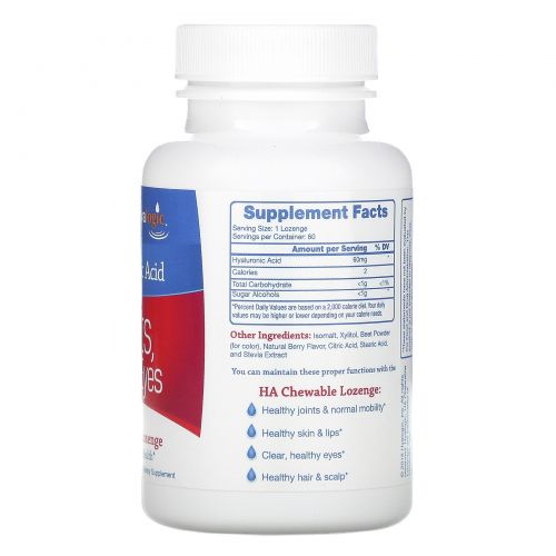 Описание товара Hyalogic LLC, Гиалуроновая кислота для суставов, кожи и глаз, ягодный вкус, 60 жевательных пастилок