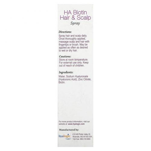 Описание товара Hyalogic LLC, Спрей для волос и кожи головы с биотином ХА, 4 жидк. унц. (118 мл)