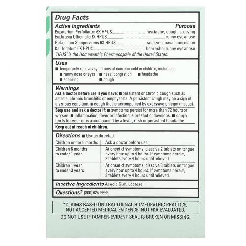 Описание товара Hyland's, Детские маленькие таблетки от простуды, 125 быстрорастворимых таблеток