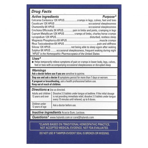 Описание товара Hyland's Naturals, добавка против судорог в ногах, для приема в ночное время, 50 быстрорастворимых таблеток