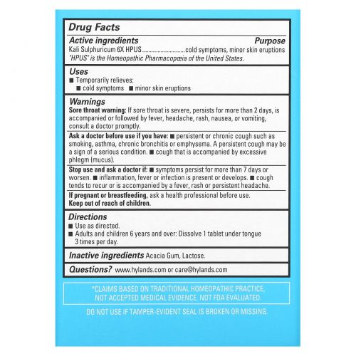 Описание товара Hyland's Naturals, Cell Salt # 7, Kali Sulph 6X, быстрорастворимая одна таблетка