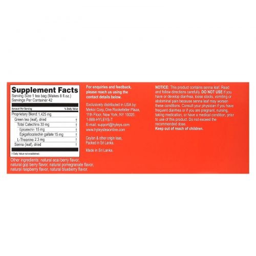 Описание товара Hyleys Tea, Slim Tea, Assorted Tea Collections, 42 Foil Envelope Tea Bags, 0.05 oz (1.5 g) Each