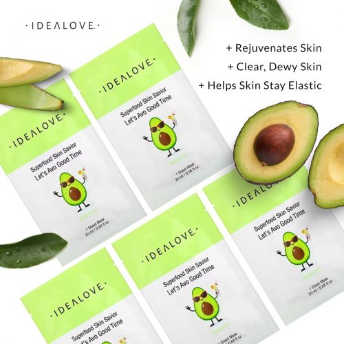 Idealove, Superfood Skin Savior, маска для лица с суперфудами, авокадо, 5 шт. по 20 мл (0,68 жидк. унции)