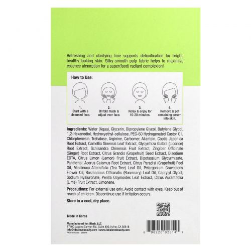 Описание товара Idealove, Superfood Skin Savior, маска с суперфудами, лайм, 5 шт. по 20 мл (0,68 жидк. унции)