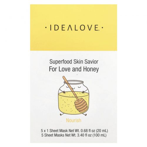 Описание товара Idealove, Superfood Skin Savior, маска с суперфудами, мед, 5 шт. по 20 мл (0,68 жидк. унции)