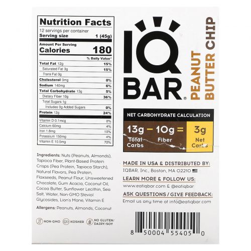 IQBAR, Арахисовая крошка, 12 батончиков по 45 г (1,6 унции)