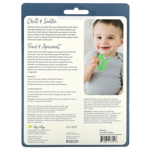 Описание товара Itzy Ritzy, Cutie Coolers, Soothing Water-Filled Teethers, 3+ Months, Cacti, 3 Teethers