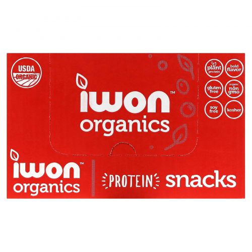 Описание товара IWON Organics, Organics Protein Puffs, карамелизованный лук, 8 пакетиков по 42 г (1,5 унции)