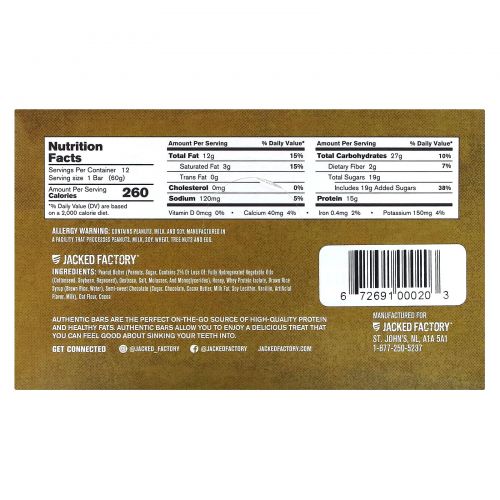 Этот батончик с высоким содержанием белка, изготовлен из настоящих пищевых ингредиентов, без искусственных подсластителей и сахарных спиртов, соответствует миссии Jacked Factory: Создавайте продукты, которые превосходят ваши ожидания на вкус и не портят ваш кошелек.