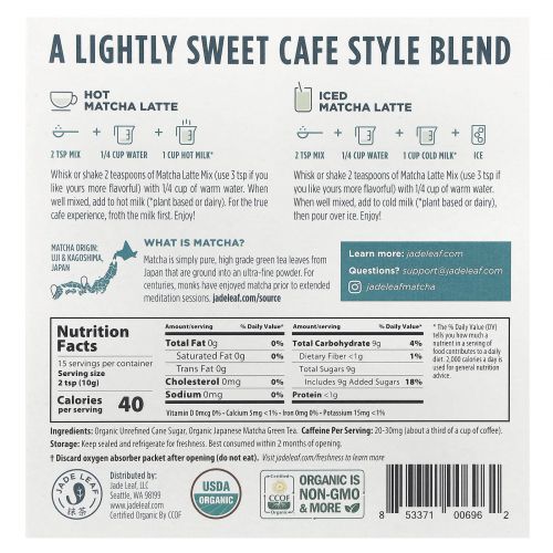 Описание товара Jade Leaf Matcha, матча латте, классический, 150 г (5,3 унции)