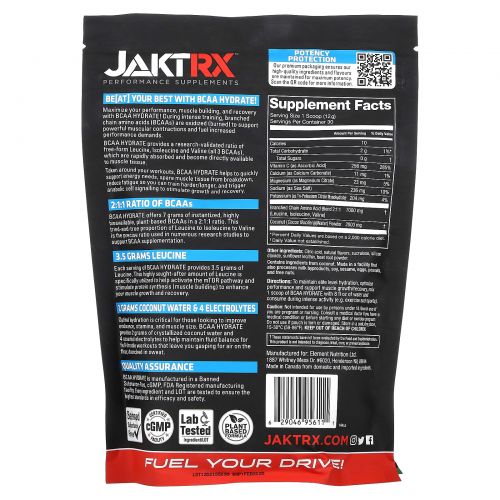 Описание товара JAKTRX, BCAA Hydrate с кокосовой водой и электролитами, вишневый лаймад, 360 (12,7 унции)