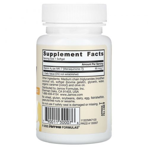 Описание товара Jarrow Formulas, MK-7, 90 mcg, 120 Softgels