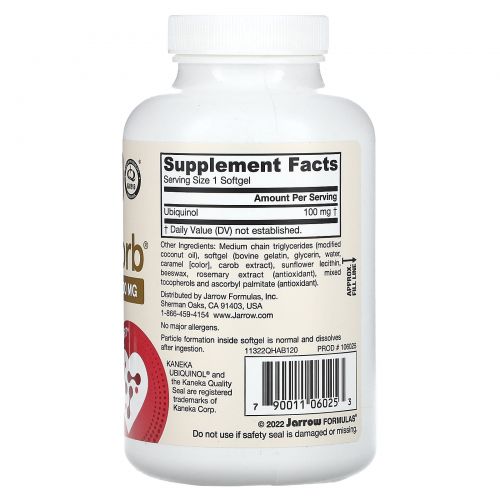 Описание товара Jarrow Formulas, QH-Absorb, Убихинол, 100 мг, 120 гелевых капсул