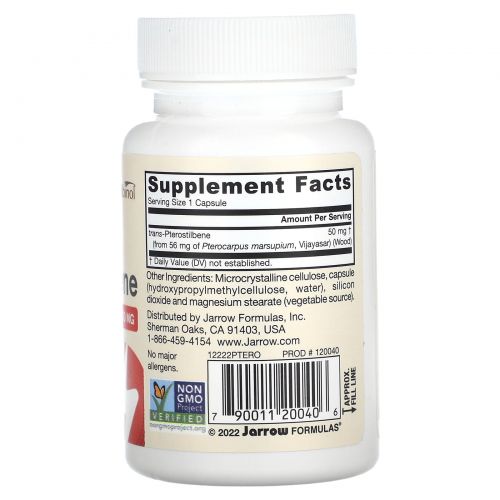 Описание товара Jarrow Formulas, Транс-птеростильбен, 60 вегетарианских капсул