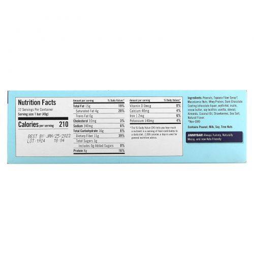 Описание товара JiMMY!, Be Lean Bars With Benefits, клубника и орех, 12 протеиновых батончиков, 45 г (1,59 унции)