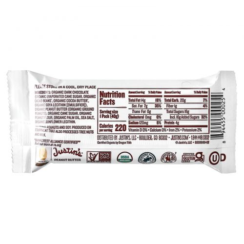 Описание товара Justin's Nut Butter, Органический темный шоколад с арахисовой пастой, 2 стакана, 40 г (1,4 унции)