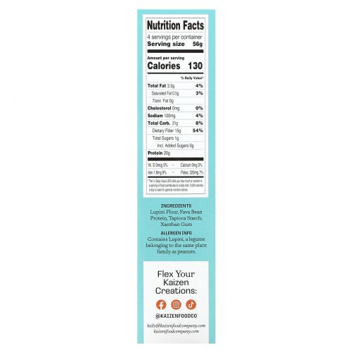Описание товара Kaizen, фузилли, без глютена, с высоким содержанием белка и низким содержанием углеводов, растительное, 226 г (8 унций)