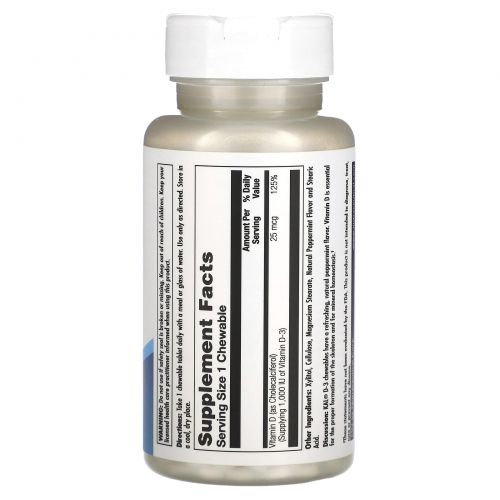 Описание товара KAL, D-3, мята, 25 мкг (1000 МЕ), 200 жевательных таблеток