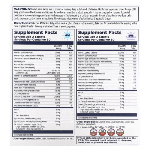 Описание товара KAL, Мультивитамины, для приема утром и вечером, 2 пакетика, 60 таблеток в каждой