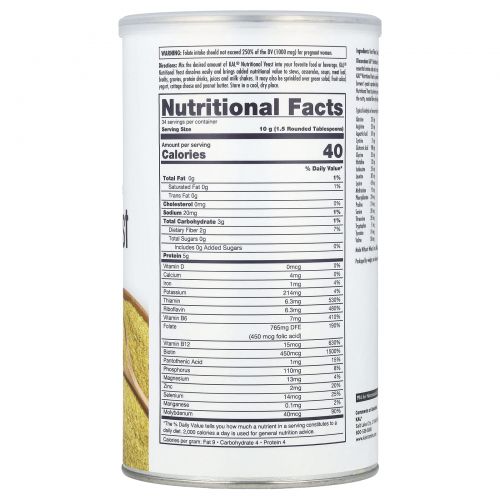 Пищевые дрожжи KAL выращиваются на специально подготовленной черной патоке. Такая питательная среда позволяет выращивать дрожжевые хлопья, содержащие полный набор незаменимых аминокислот и сбалансированную дозу витаминов группы B. Эти растительные хлопья премиум-качества не содержат подсластителей, ГМО, а также содержат мало жира и натрия. В пищевые дрожжи KAL добавлены витамины группы B для увеличения их питательной ценности. Традиционные пивные дрожжи изготавливаются в процессе пивоварения и могут иметь горьковатый привкус. Благодаря тому, что питательные что дрожжи KAL выращиваются на мелассе, они обладают естественным приятным вкусом. Поэкспериментируйте со вкусом жареных орехов, добавляя эти хлопья в свои любимые блюда.