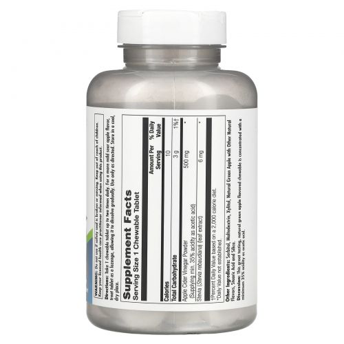 Описание товара KAL, Яблочный уксус, зеленое яблоко, 500 мг, 60 жевательных таблеток