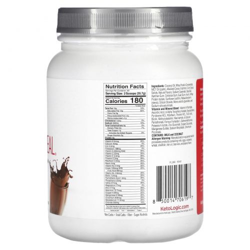 Описание товара KetoLogic, KetoMeal, заменитель еды, шоколад, 714 г (25,2 унции)