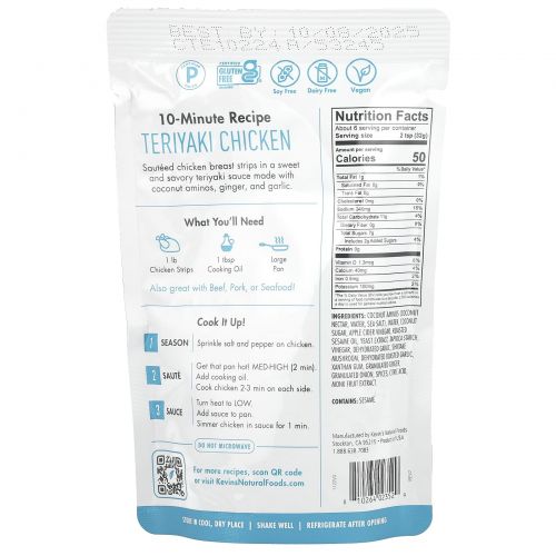 Описание товара Kevin's Natural Foods, Соус Терияки, 7 унций (198 г)