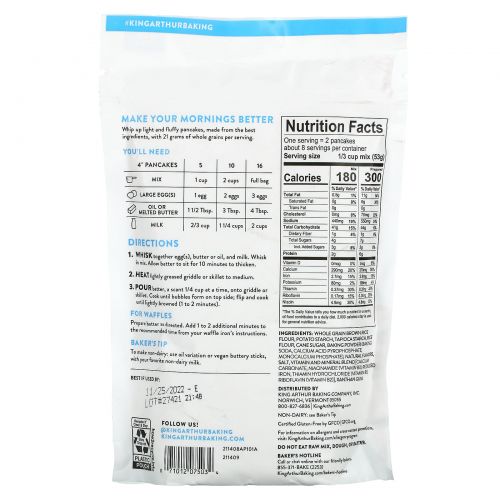 Описание товара King Arthur Flour, безглютеновая блинная смесь, 425 г (15 унций)