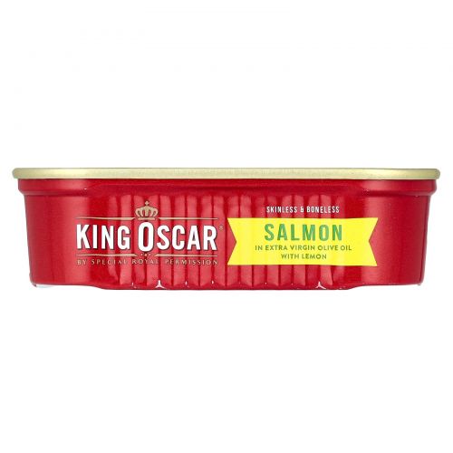 Описание товара King Oscar, лосось без кожи и костей, в нерафинированном оливковом масле высшего качества с лимоном, 115 г (4,05 унции)
