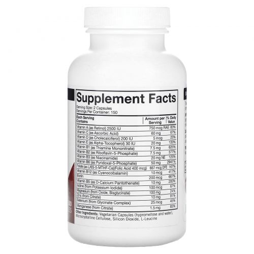 Вегетарианская капсула (гипромеллоза и вода), диоксид кремния, L-лейцин.
