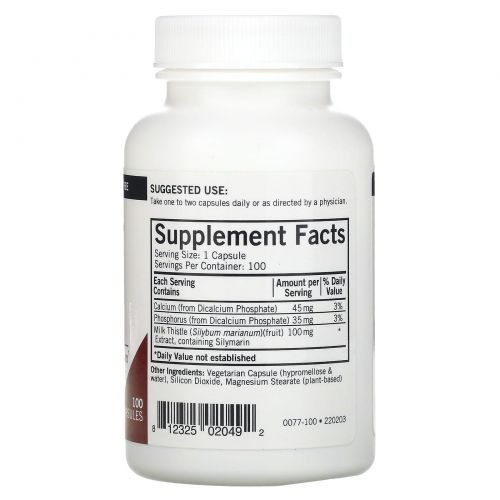 Описание товара Kirkman Labs, Расторопша, 100 мг, 100 капсул