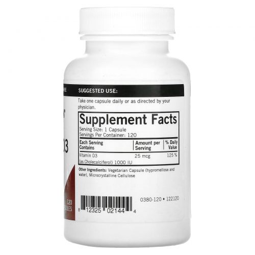 Kirkman Labs, Витамин D-3, 1000 МЕ, 120 капсул