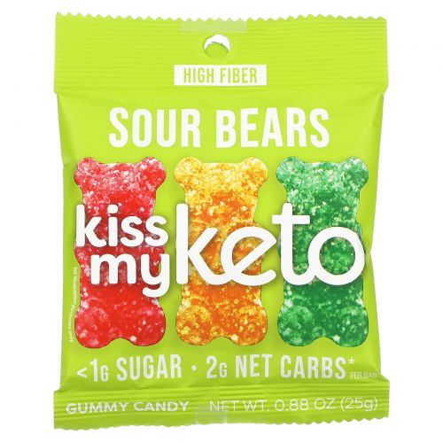 Kiss My Keto, Gummy Candy, кислые мишки, 8 пакетиков, 25 г (0,88 унции)