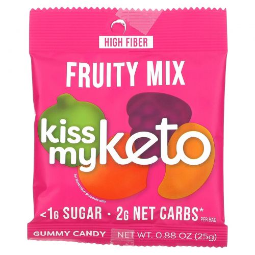 Описание товара Kiss My Keto, Жевательные конфеты, фруктовая смесь, 8 пакетиков по 25 г (0,88 унции)