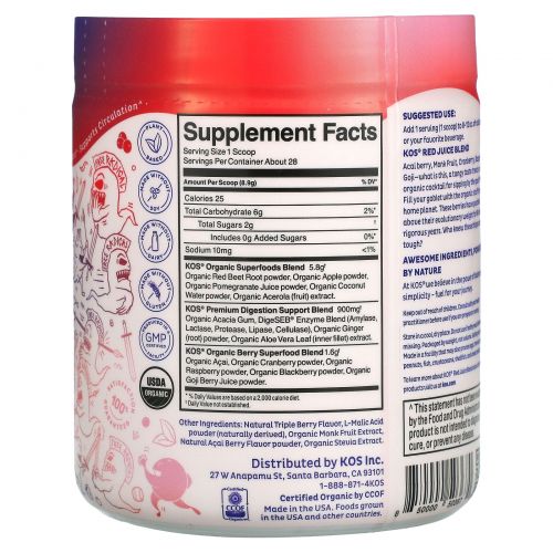 Описание товара KOS, Love You Berry Much, Energizing Red Juice Blend, Goji Berry Popsicle, 13.81 oz (391.6 g)