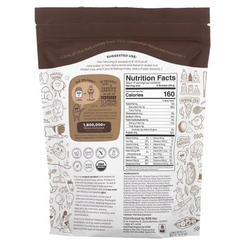 Описание товара KOS, Органический растительный протеин, шоколад, 546 г (1,2 фунта)