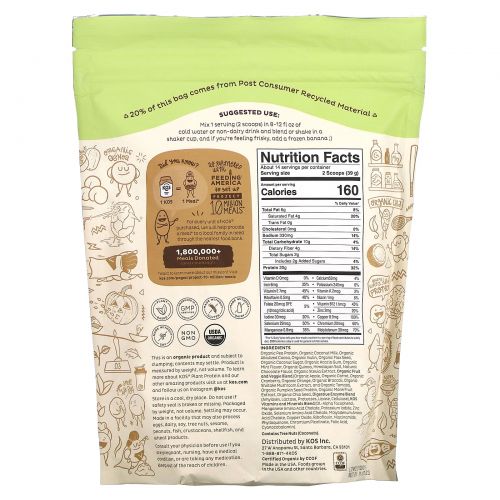 Описание товара KOS, Органический растительный протеин, шоколадная крошка и мята, 546 г (1,2 фунта)