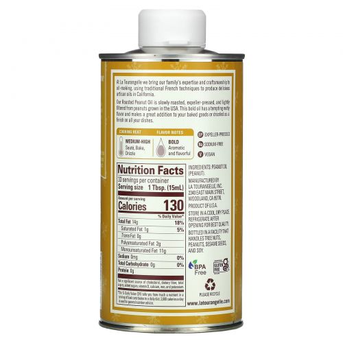 Описание товара La Tourangelle, Масло из обжаренного арахиса, 500 мл