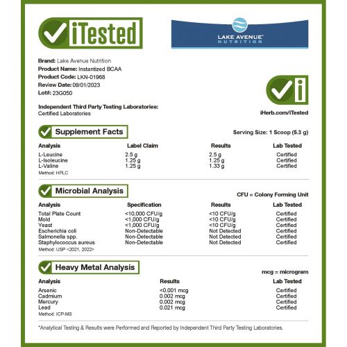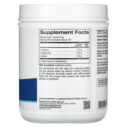 Описание товара Lake Avenue Nutrition, Instantized BCAA Powder, Unflavored, 32 oz (907 g)
