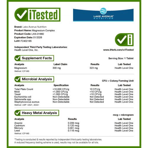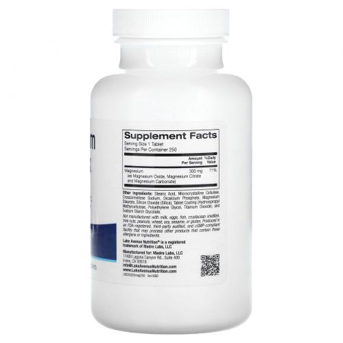 Описание товара Lake Avenue Nutrition, Magnesium Complex, 300 mg, 250 Tablets