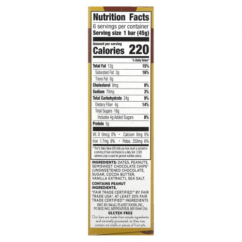 Описание товара Larabar, The Original Real Fruit & Nut Bar, арахисовая паста и шоколадная крошка, 6 батончиков по 45 г (1,6 унции)