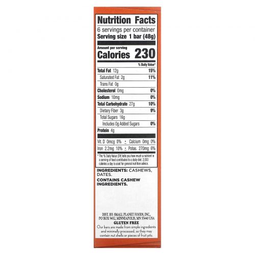 Описание товара Larabar, The Original Real Fruit & Nut Bar, печенье с кешью, 6 батончиков, 48 г (1,7 унции)