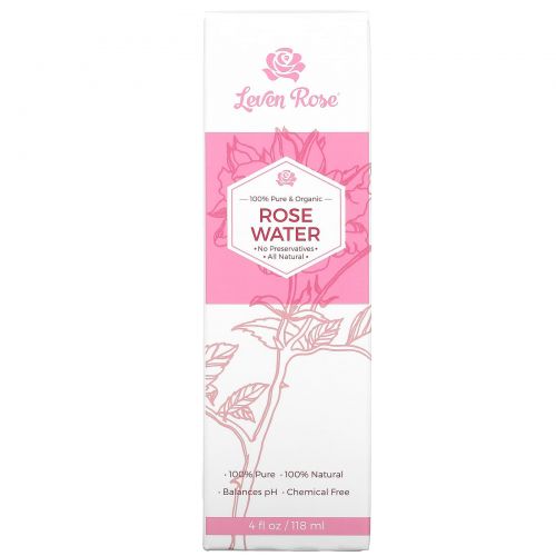 Описание товара Leven Rose, 100% чистая органическая розовая вода, 4 жидких унции (118 мл)