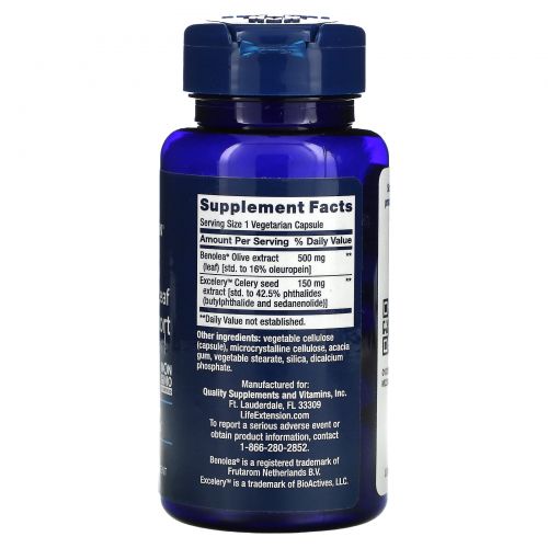 Описание товара Life Extension, Advanced Olive Leaf Vascular Support, with Celery Seed Extract, 60 Veggie Caps