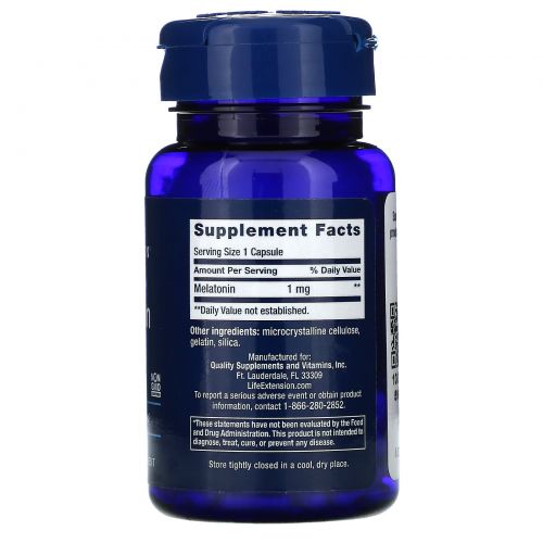 Описание товара Life Extension, Мелатонин, 1 мг, 60 капсул