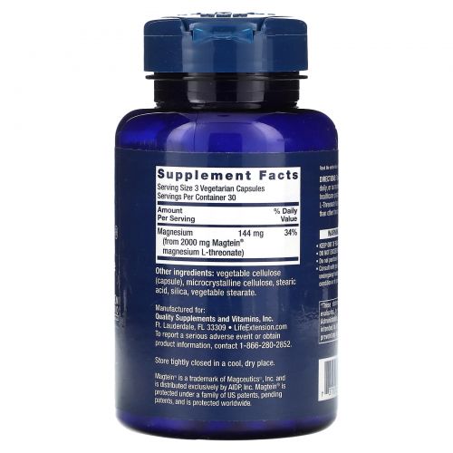 Описание товара Life Extension, Neuro-Mag, магний L-треонат, 90 вегетарианских капсул