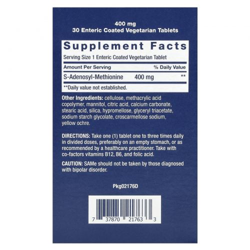 Описание товара Life Extension, SAMe, 400 mg, 30 Enteric Coated Tablets