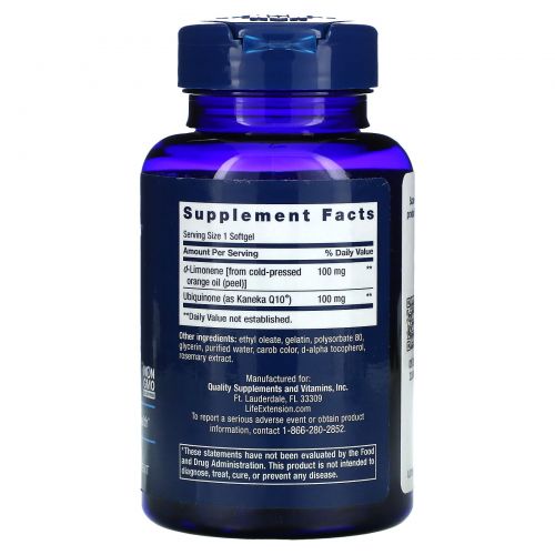 Описание товара Life Extension, Супер-усваиваемый коэнзим Q10 кофермент с d-лимоненом, 100 мг, 60 капсул в мягкой оболочке
